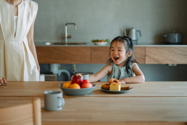 365日×3食。とても多くの時間をキッチンで過ごします。家の中心となる位置にキッチンを設け、家族とのコミュニケーションが取りやすく、楽しく料理ができるようにするは日々の暮らしを楽しくするのにとても重要だと考えています。